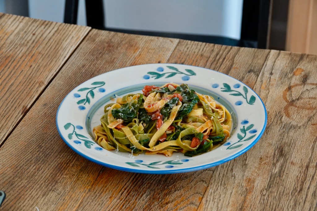 - On Timing: We used fresh pasta which only required 3 or 4 minutes to cook. We added the pasta and the spinach to the boiling water at almost the same time. Boxed pasta will probably take longer to cook which will change the timing of this dish.